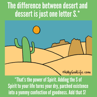 My life without Spirit is barren indeed. Of course, I’m never without Spirit. But when I think I am, my vital, thriving existence shrivels up into a tiny ball of woe. Who wants woe? Not me! So today I remember to add the “S.” I add Spirit to my plans for the day. I add Spirit to every encounter I have. I add Spirit to my thoughts, my feelings, my intentions. With the S of Spirit involved, my life shines!