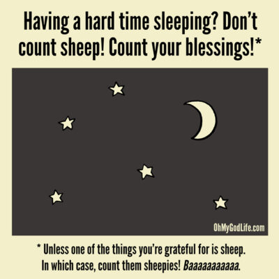 My problem is that I am so filled with gratitude that I am awake all night being grateful and, therefore, not getting the sleep I need. It doesn’t sound like a problem, but, it is.