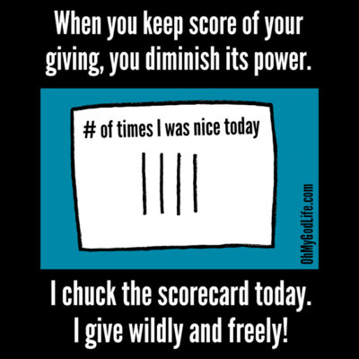 Giving feels best when it’s free. When I’m not keeping a tally in my head of how many times I’ve given, or still have yet to give. I can just give. And give and give and give! I can give to myself. I can give to others. I can give to folks who appreciate it. I can even give to the grumpy ones. I am free to give wherever and whenever I want. When I give freely, it opens up a huge channel of love within me. What a gift!