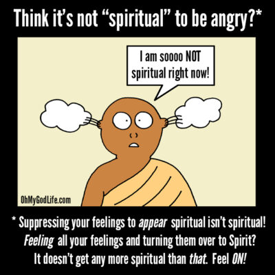 If I’m trying to appear super chill and spiritual, getting angry doesn’t go along with my chill image. But getting angry is part of life! There’s lots of energy stored in anger, and when I simply allow myself to feel it – without acting out and harming myself or others – my anger is a fuel. Righteous anger can help me set a boundary. Irrational anger can simply be observed and released. I feel it all!