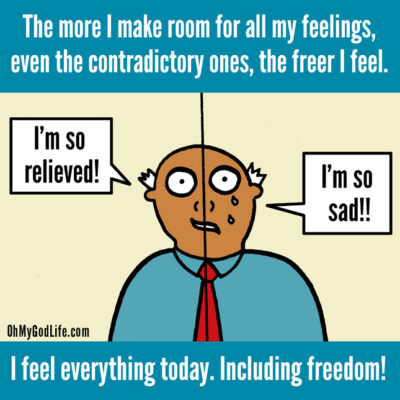 My feelings don’t always make sense. Sometimes I feel things that directly contradict each other. I may feel happy and also a little sad. I may feel relieved as well as remorseful. My feelings are a wonderful opportunity to simply allow. I allow my sadness. I allow my joy. I allow every single emotion that moves through. This allowing creates space for me.