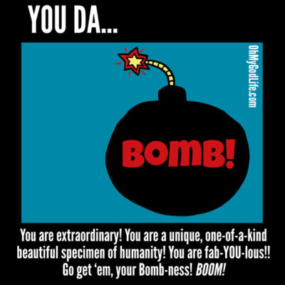 Attention! This is a special notification from the You Da Bomb Committee! Today you have been chosen to be let in on something that we have known for ages but you may be painfully unaware of: You. Are. The. Bomb. And by “bomb” we mean a Brilliant, One-of-a-Kind, Magnificent Being. B.O.M.B! We suggest you let this information sink in. We suggest you pretend that it’s true, even if you can’t fully acknowledge it. Thank you for your BOMB-ness!