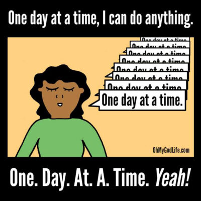 Taking on a new habit or commitment can feel overwhelming. But I don’t have to take it on all at once. I can focus on one day at a time. Or one minute at a time, if necessary! The present moment is a powerful place. When I put all my attention on the present moment, releasing future fears, I am building up energy and momentum to pull me forward. One day at a time.