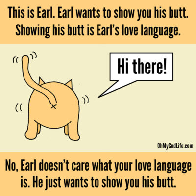 Everyone communicates love in different ways. When I realize this, I can find love everywhere. I can see that everyone wants love. Everyone wants to express love. They just have different – and sometimes funny – ways of expressing it. Keeping my eyes out for love in every action and expression makes me more able to receive it. Then, full of love, I can blast it out to the world. Thank you, Earl!